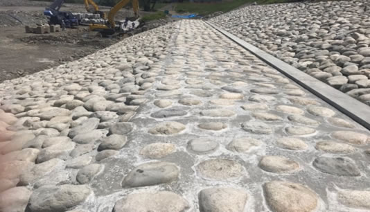 ◆使用する石材は、現地発生材(現地採取)、購入石、割石、玉石等、粒径の大小に関わらず使用可能で、地域風景にあった修景が創出可能です。