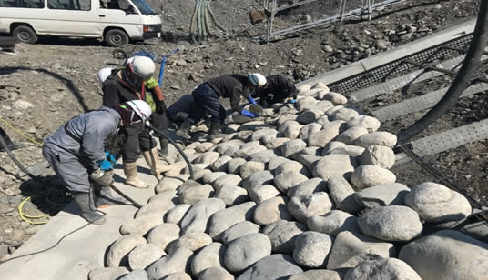 - 松本市 上高地産屋沢 渓流保全工事 底張り工