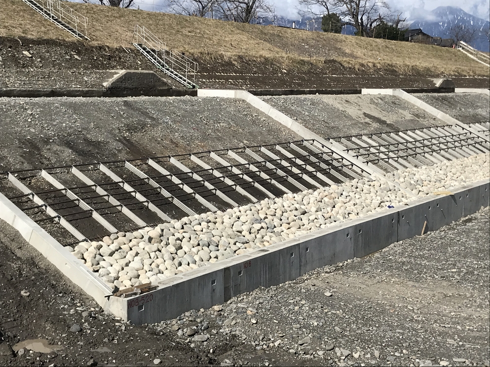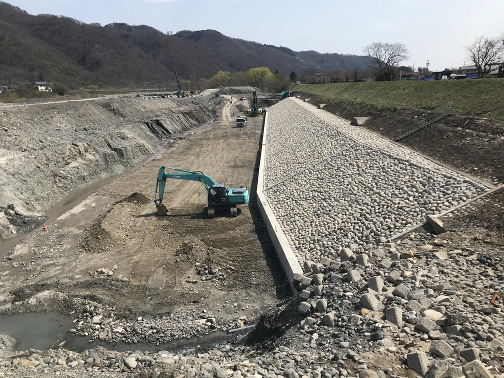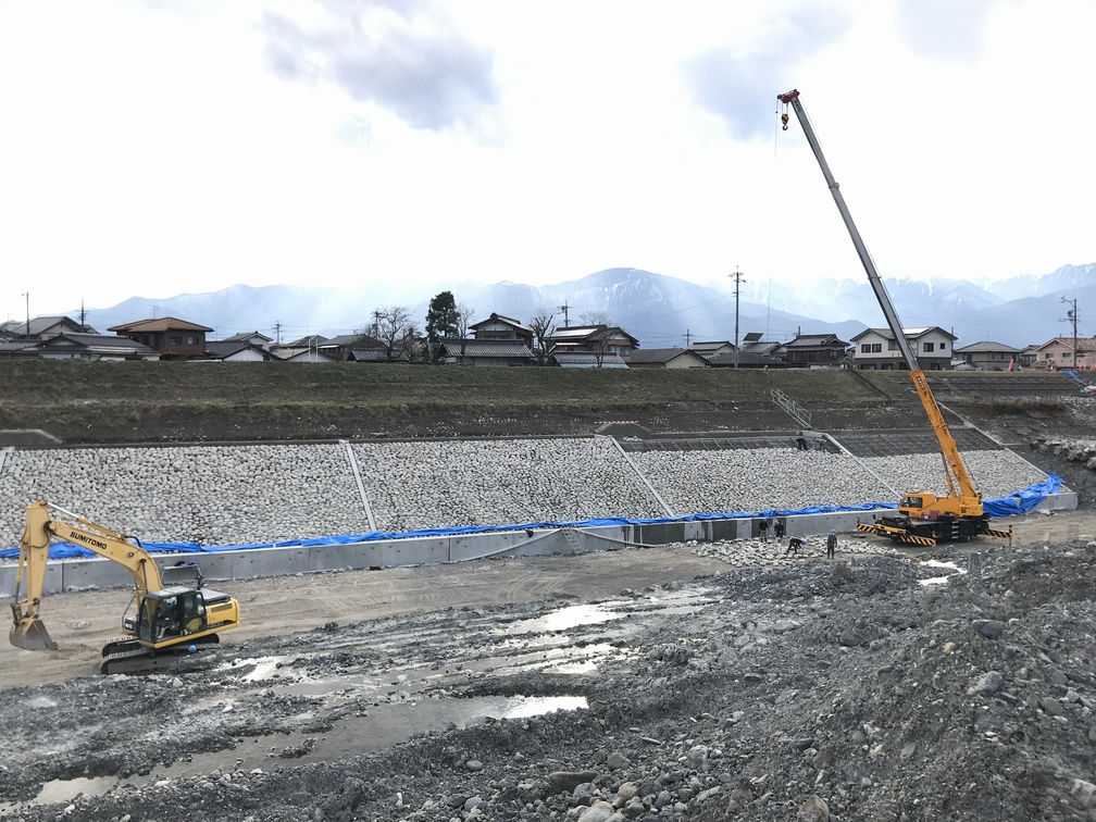 安曇野インター東側の高家(たきべ)護岸災害復旧工事。