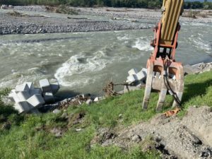 梓川にアルプス大橋下流左岸にある島内護岸は、令和元年台風19号により被災しました。
