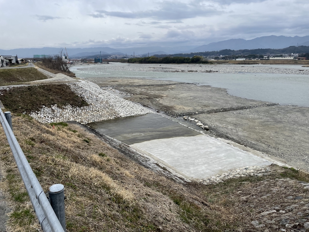 天竜川本川右岸、高森町下市田地区護岸と、左岸豊岡村伴野地区護岸の修繕工事です。