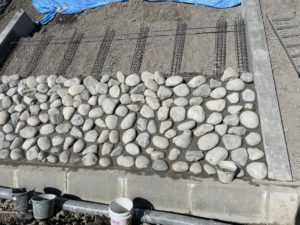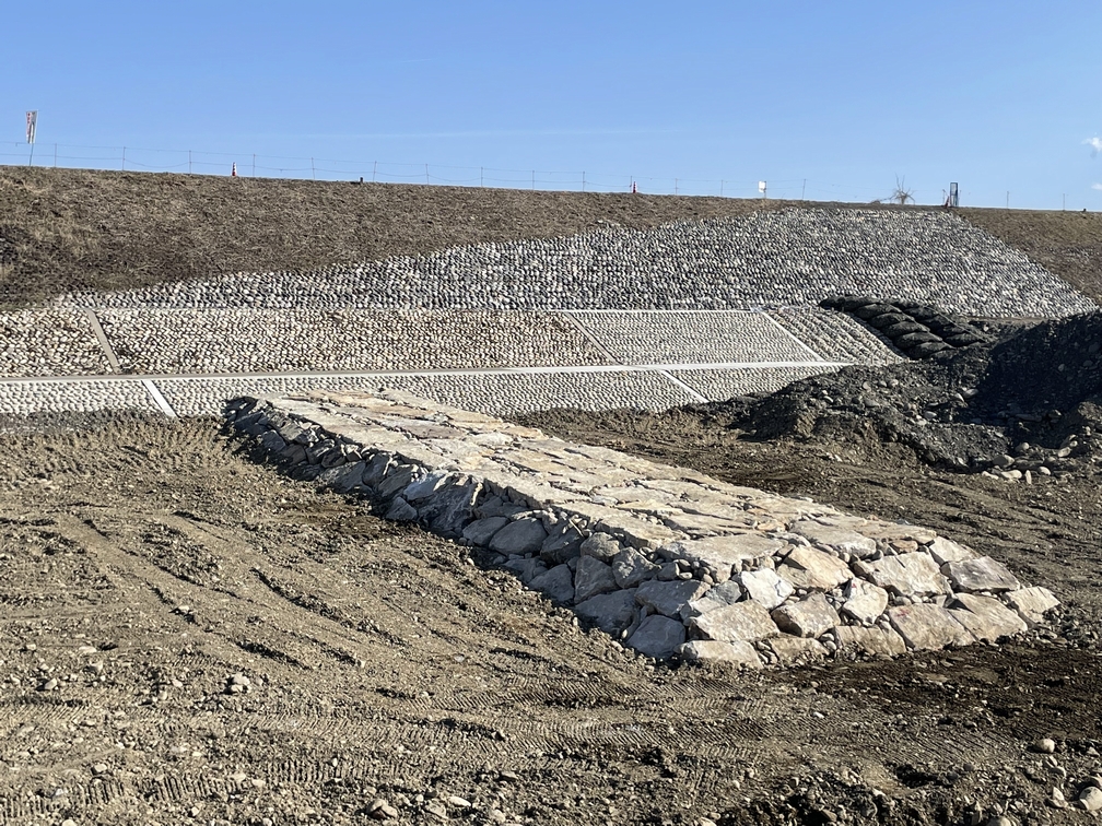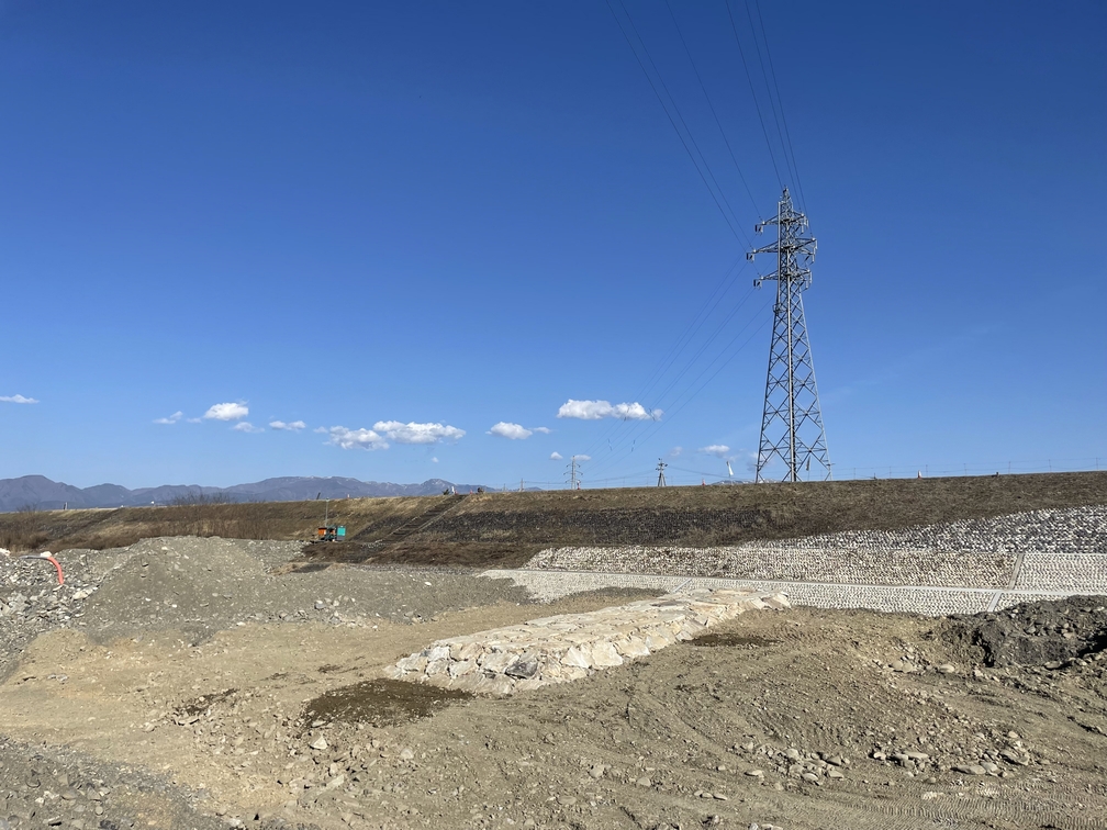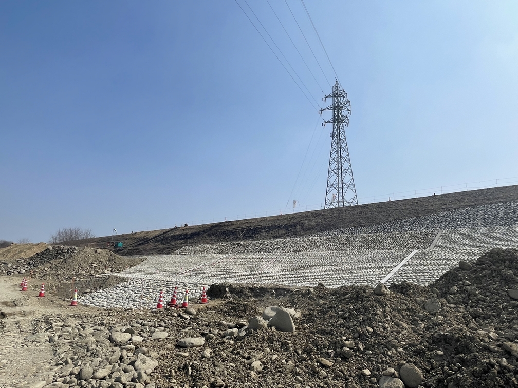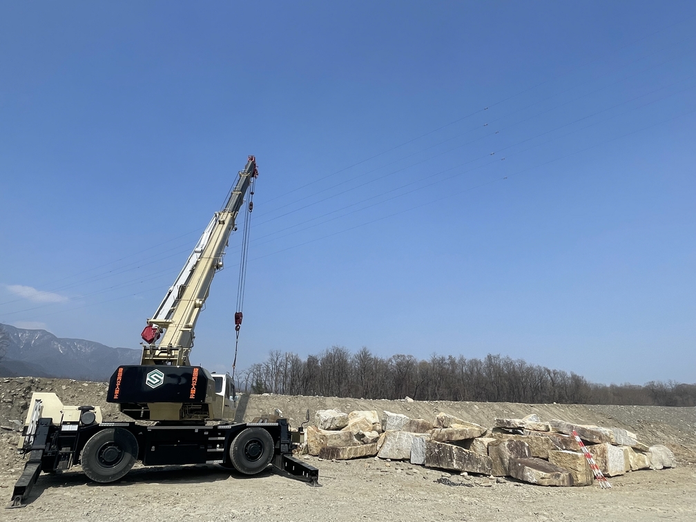 ●工種/規模① 背面アンカー一体型練石張AZOT-STONE工法 455m3 (資材納入)巨石水制工1基